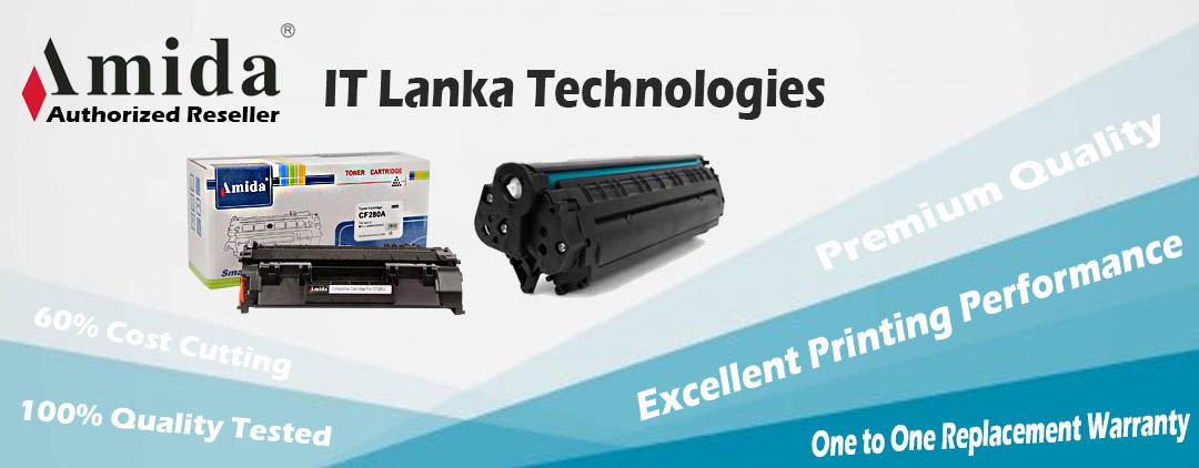 IT Lanka Technologies is a leading authorized reseller in Amida Toners.We have any kind of toner models.We promise to offer you continued and stable quality products, and satisfied service. Amida is the Internationally recognized Brand.Our Toner Printing Performance is Excellent.Amida Toner fully tested our labs as well as we can give 100% guaranteed our Amida Compatible Toners. Amida Certified ISO9001, ISO14001 Amida Toners using HP,Canon,Samsung,Lexmark,Xerox,Brother,Panasonic,kyocera,Richo printers and photocopy machine also